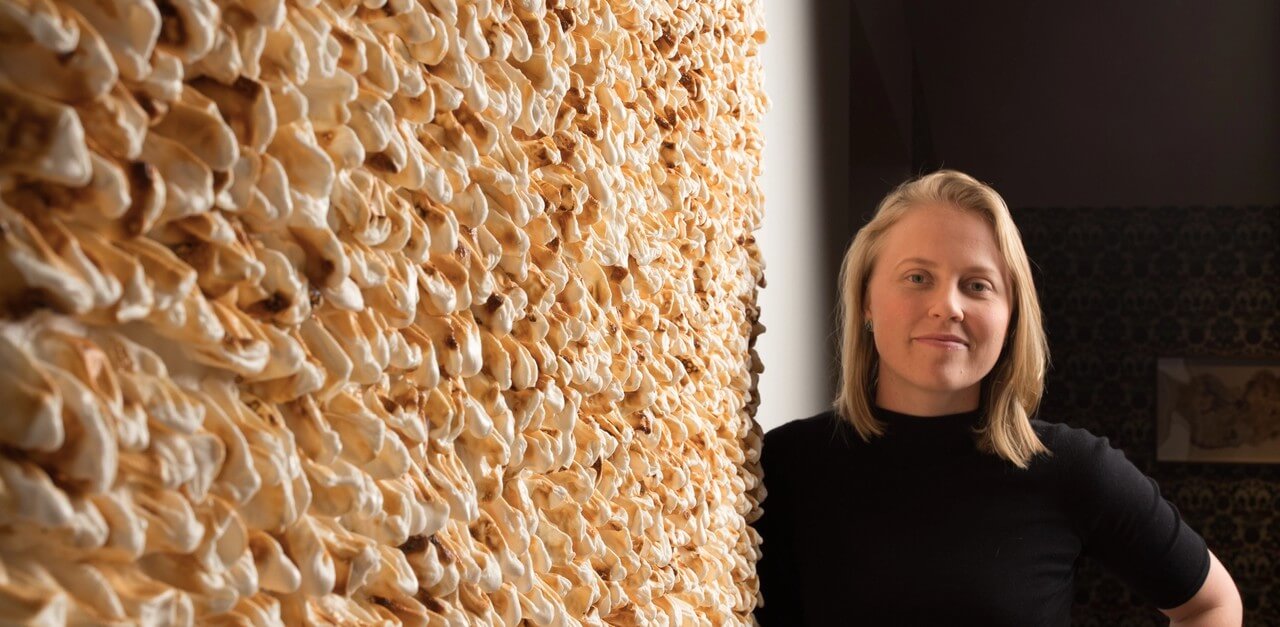 Catch a glimpse of how Elizabeth develops her food and hospitality inspired works including a large-scale kipfler printed textile she’s been working on in the gallery studio.