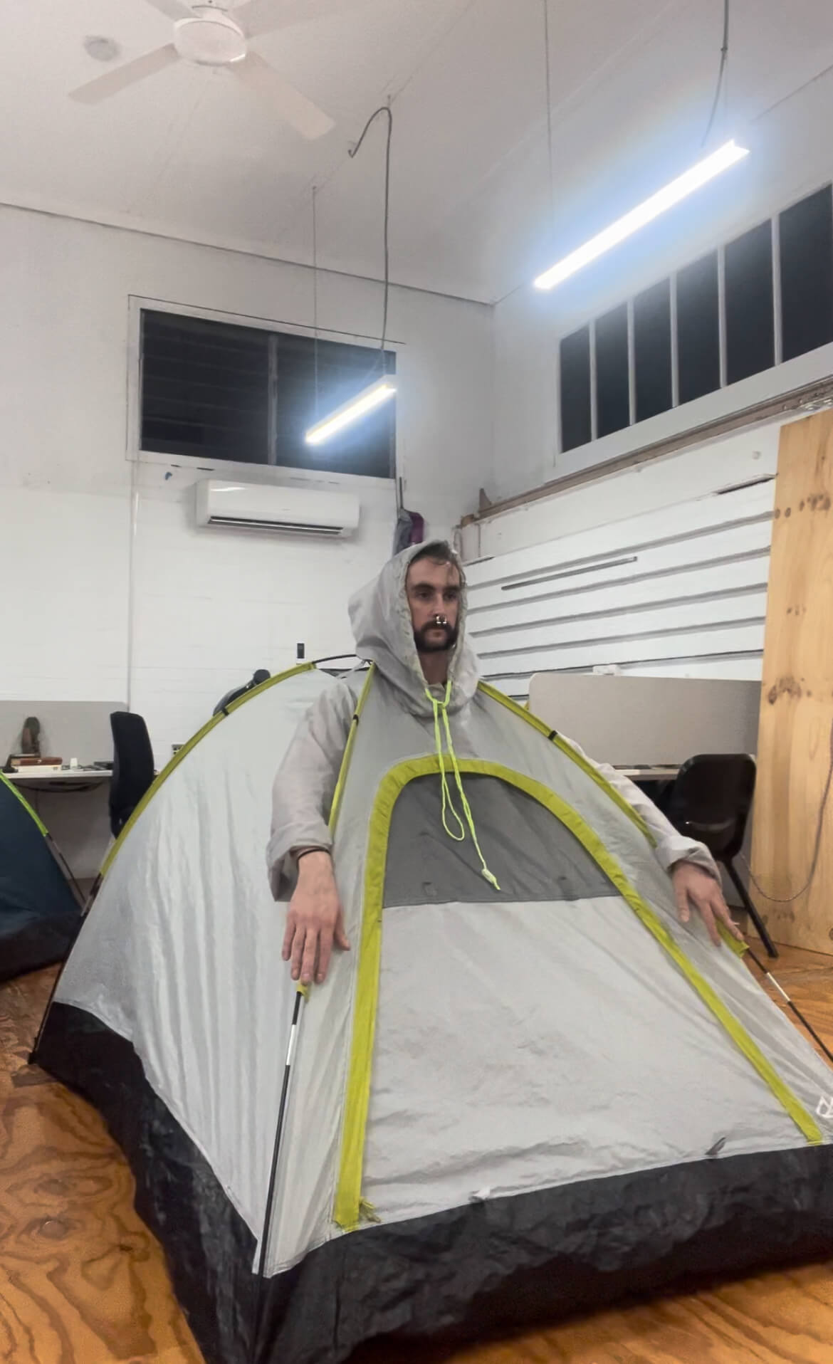 I’ve found tents particularly compelling in their intersectional context, as mobile spaces of temporality, intimacy, shelter, housing. I am interested in the visual language of tents as things that are at times vital, protective, cheeky or leisurely, their relation to protest, war, housing crisis, festivals, queer cruising culture, and so on. The crinkly, shiny materials of nylon, PVC and tarp are so aggressively unnatural that they become anti-natural, barriers that protect the user from the elements, their entire existence defies nature. There’s something dangerous (environmentally and physically) about these materials, they feel, or at least they should feel, completely alien to this world. Thematically in this project, I think I find these plastic, anti-natural materials to be a contemporary equivalent of the forbidden materials given to humans by the angels, which I mentioned in my previous blog. These materials that we have come to rely on are harming us and the world, the punishment for harnessing “forbidden” unnatural materials and processes.